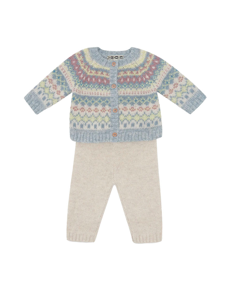 L'Outfit Toudou from the collection "Newborn"is a cocoon of sweetness for toddlers. With its top Cardigan and his Trousers elastic size, it offers absolute comfort to Babys curious to discover the world. Made in KnitwearSoft, it is perfect for wrap Baby in a bubble of heat and tenderness. Ideal for first months full of hugs and dreams!