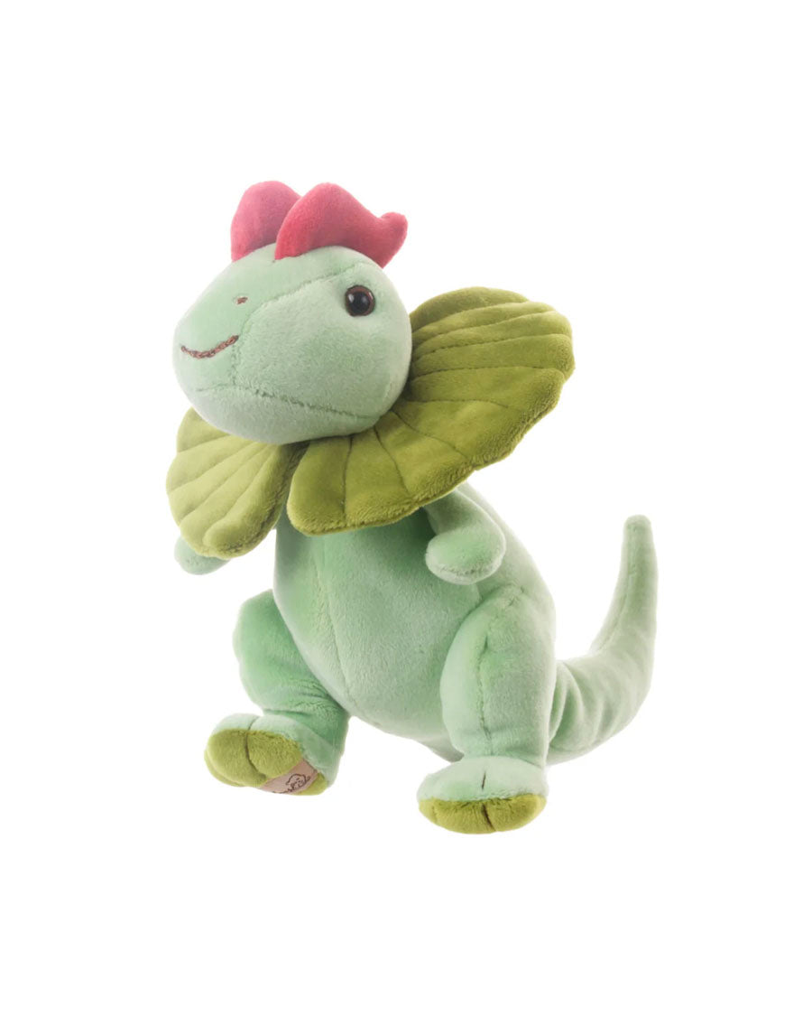 Introducing Baby Dilo, a small, vibrant green dilophosaurus full of boundless energy and eager to partake in delightful playtime. Despite being tiny in size, this little fellow is brimming with enthusiasm and prepared for all sorts of escapades.