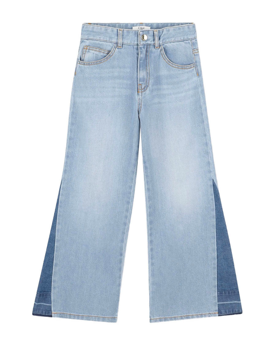 Contrast Panels Denim Trousers - Blue