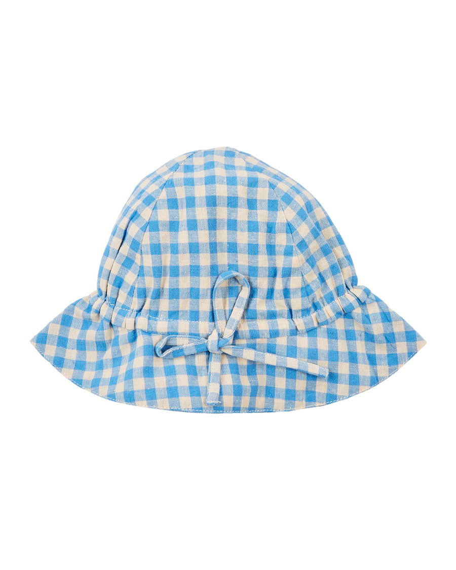 Off-white and blue gingham cotton hat. With its wide brim, it offers optimum protection for face and neck from the sun's rays. - Adjustable elastic - Flexible and lightweight - Fully lined