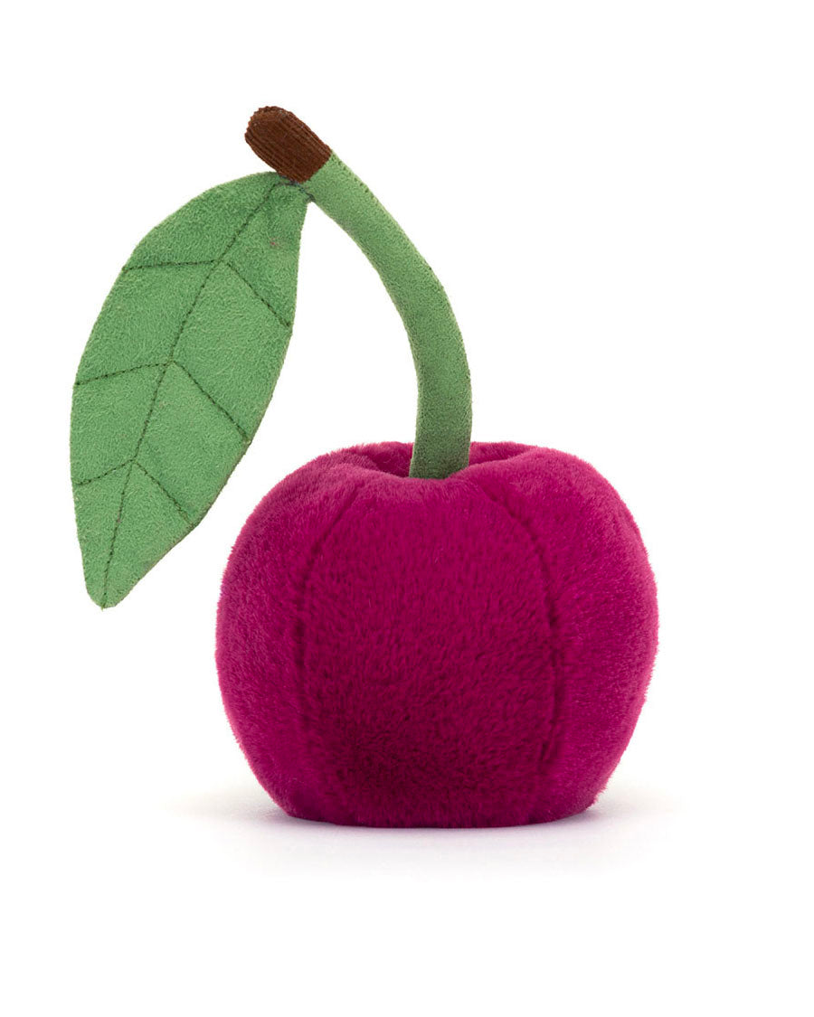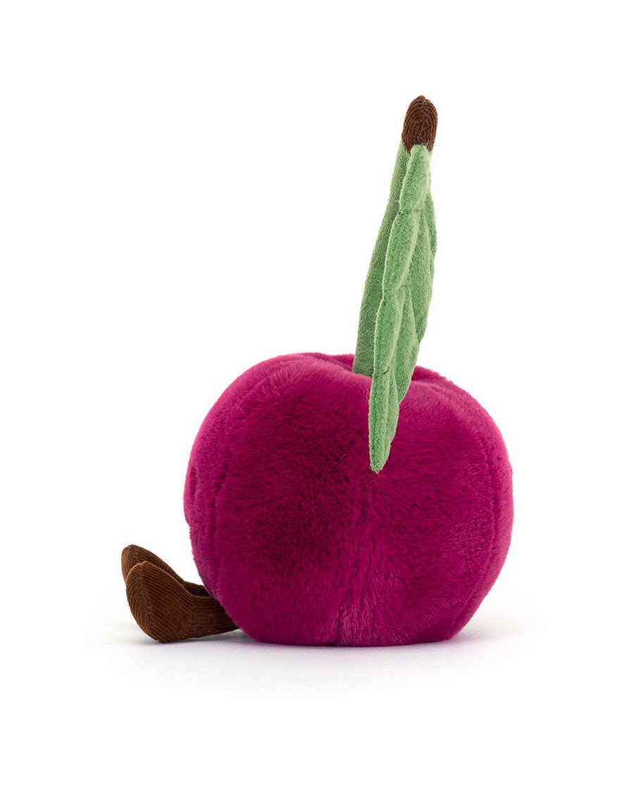Amuseables Cherry is a scrumptious pal with magenta fur and a friendly stitch smile. With cocoa cord boots, a two-tone stalk and a green embroidered suedette leaf, this cheeky berry brightens any desk.