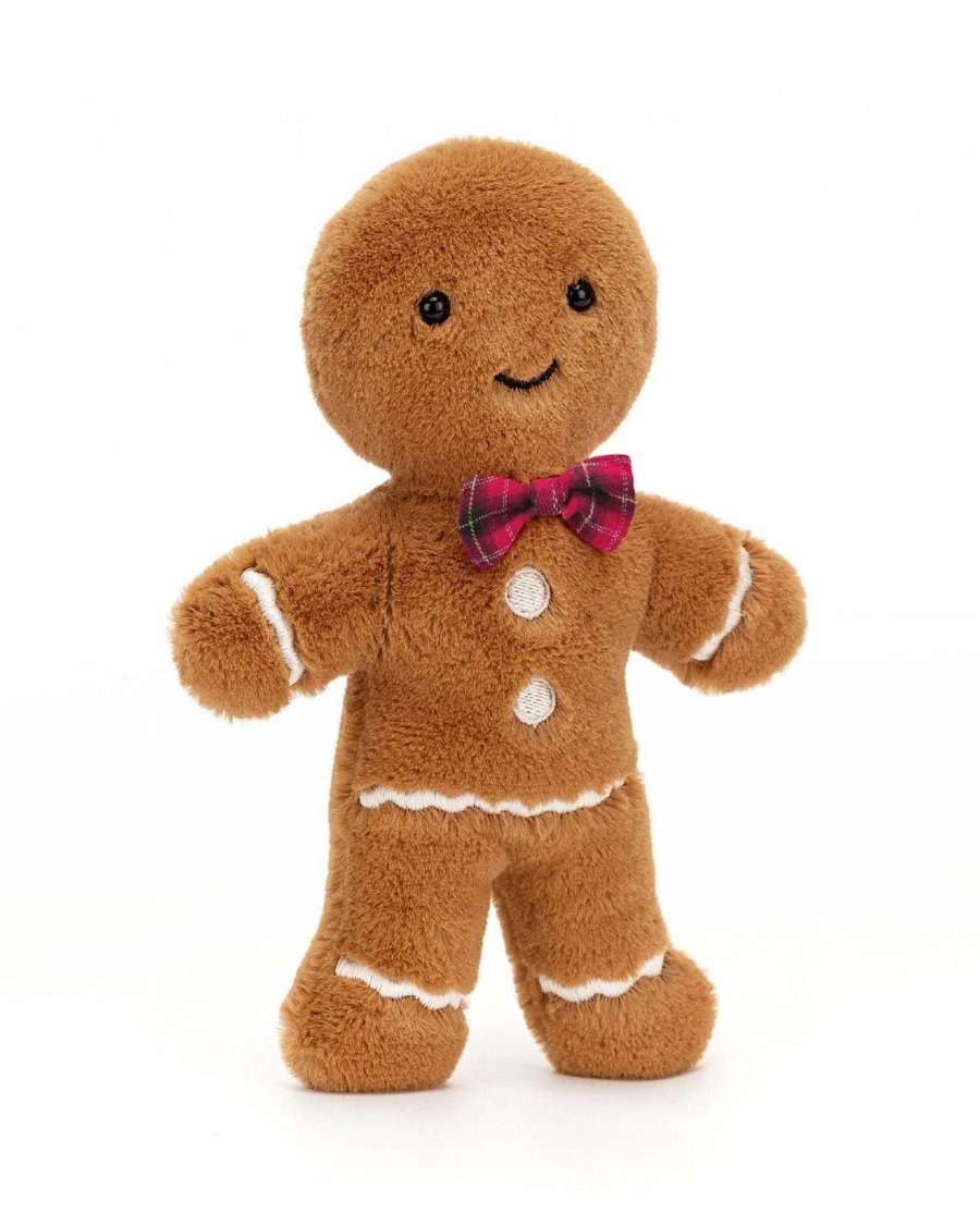 Jolly Gingerbread Fred may have hopped straight out of the tin, but this guy's always looking smart! In soft golden biscuit fur with scalloped stitch icing, embroidered buttons and a red tartan bow, Fred is a forever festive friend!