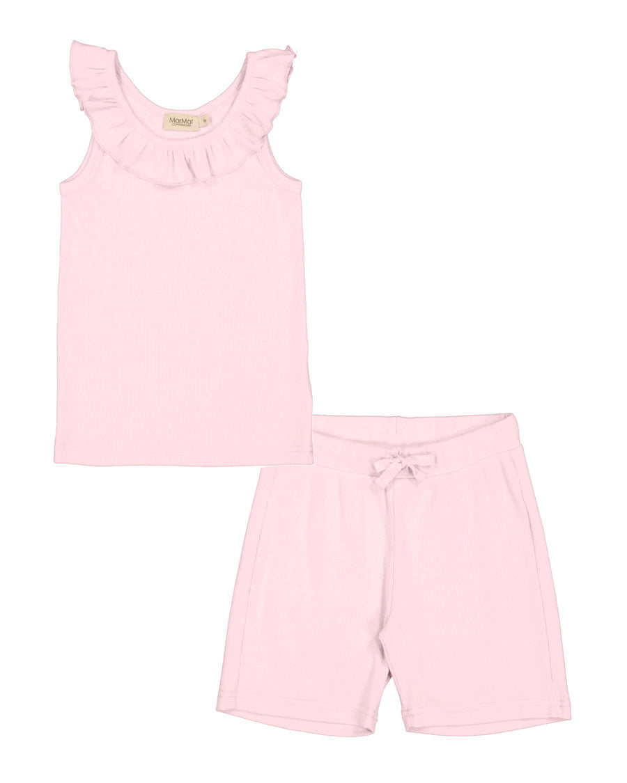 Feminine tank in a soft ribbed fabric. Features a ruffle along the neckline in both front and back. Pair with this cute skirt for a sweet look.