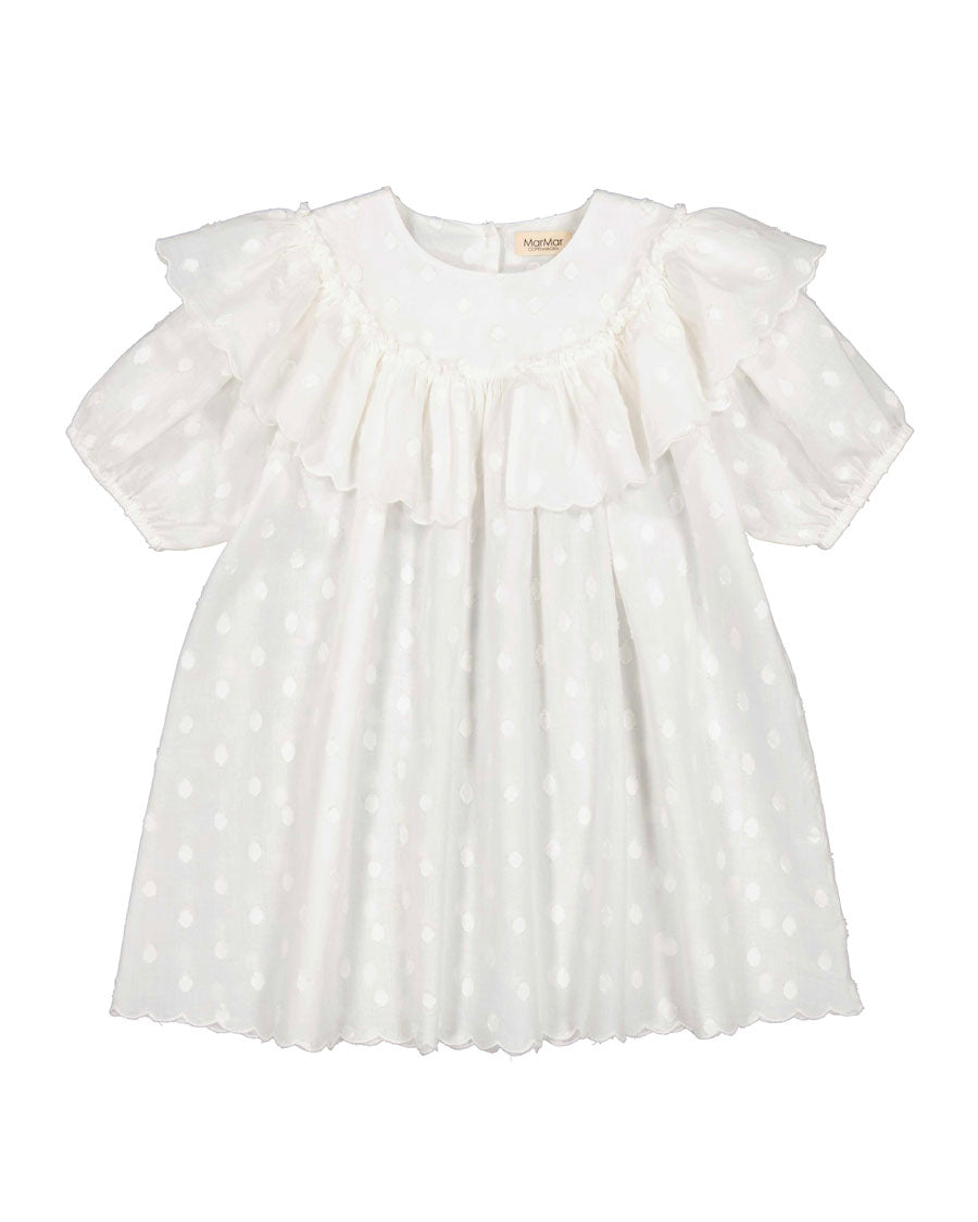 Comfortable long-sleeved dress with a good fit. The dress has a nice collar that goes all the way around. The dress closes with buttons at the back and the length goes above the knees. The dress is in a light and crispy quality.