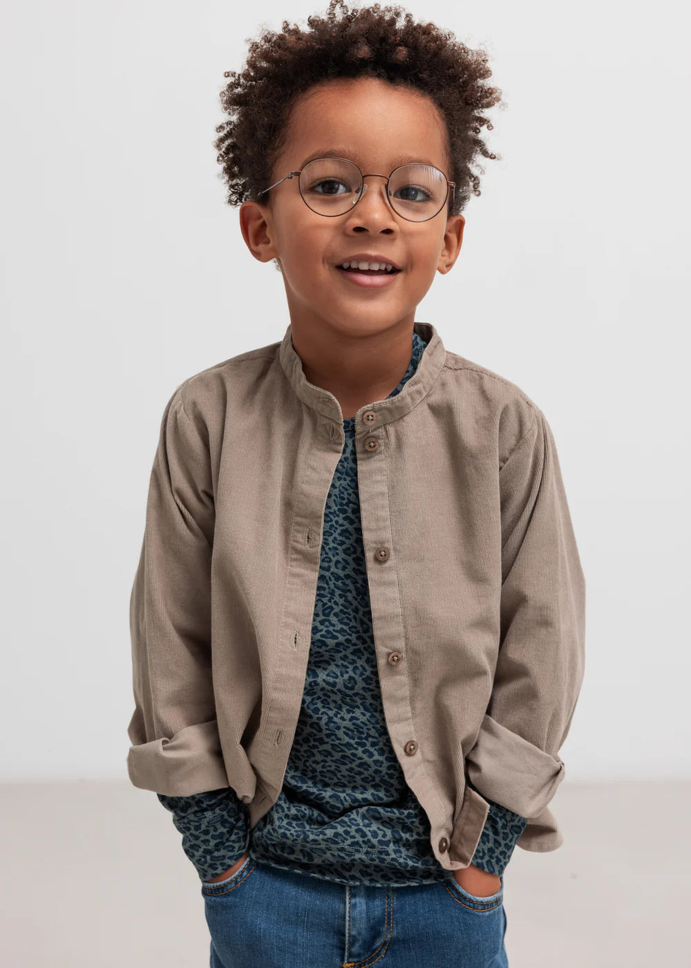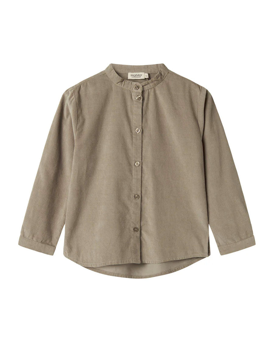 Long-sleeved shirt in baby corduroy with a collar and button closure. The shirt is light, soft and comfortable to wear.