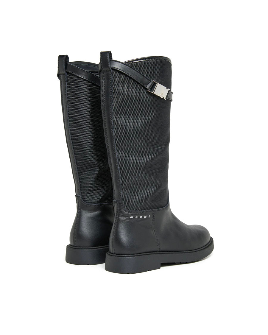 Ankle boots with a strap on top. A model that combines elegance and functionality, made of a mix of leather and technical fabric for the perfect balance of style and comfort.