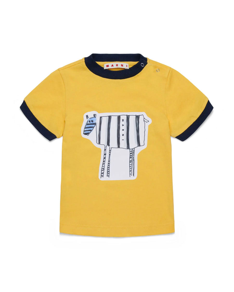 Short-sleeved jersey T-shirt. Features a print of a drawn zebra on the front. Armhole and crew-neck in contrasting colour. Made of 100% cotton.