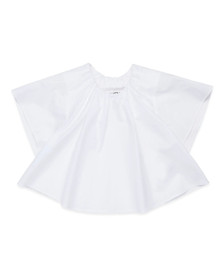 Poplin short-sleeved shirt. Gathers at the collar along the garment. Numeric logo on the bottom in color tone. Iconic seam on the back. Made of 100% cotton.