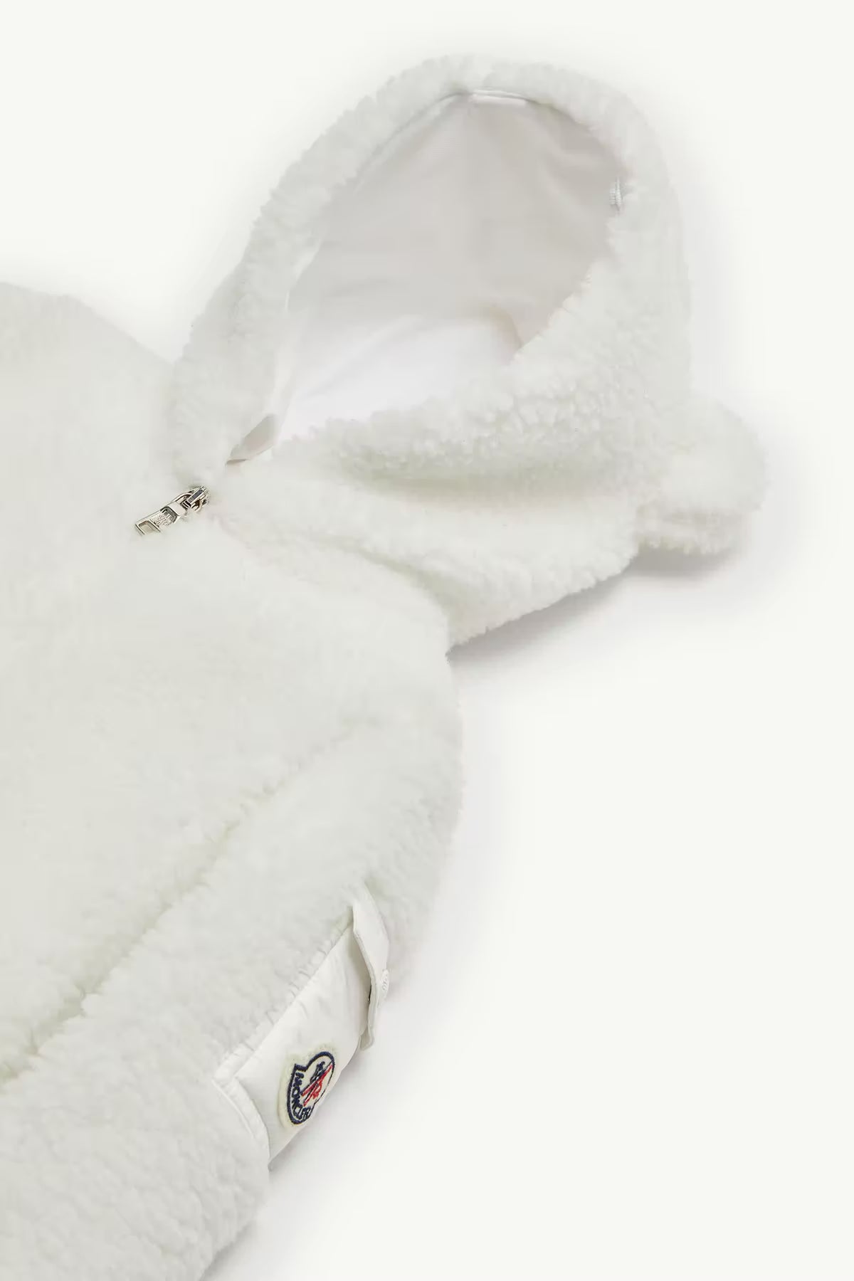 Designed to bring warmth and protection, this baby grow is crafted from plush teddy. Cotton jersey lining enhances comfort while bear-inspired ears on the hood add a playful note.