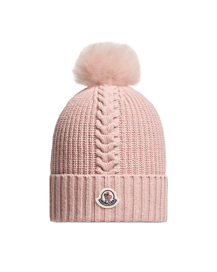 Wool Beanie w/ Shearling Pom Pom - Rose Pink