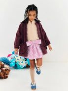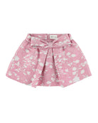 Pretty in pink! This elegant blush skirt features an allover white floral print and a standout oversized bow at the waist for a touch of extra sweetness. Crafted in a lightly textured fabric with gentle pleats, it offers structure with a soft, twirly silhouette. Perfect for special occasions, holidays, or anytime she wants to feel dressed up and confident.
