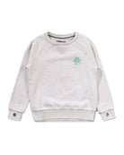 100% cotton knit fleece jumper, mineral wash with splat print.