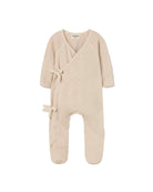 Snuggle up your little muffin in our super-duper Organic Jumpsuit for Newborns! Made from the softest organic cotton, this cozy delight wraps your tiny tot in a warm hug. With its easy-peasy wrap-over closure and snap buttons, dressing your baby is as simple as pie—just like how you make those sweet memories! The V-neckline adds a sprinkle of sweetness, while ribbons at the chest keep things cute-tastic! Plus, long fold-over mitt-sleeves mean no chilly fingers for your bundle of joy. And did we mention the snuggly feel and pretty openwork jacquard? Perfect for their first hospital adventure or just lounging around looking oh-so-adorable! Your little star deserves to shine bright in style with Cozmo’s fabulous jumpsuit for newborns. Get ready for all the “Awws” when they wear it!