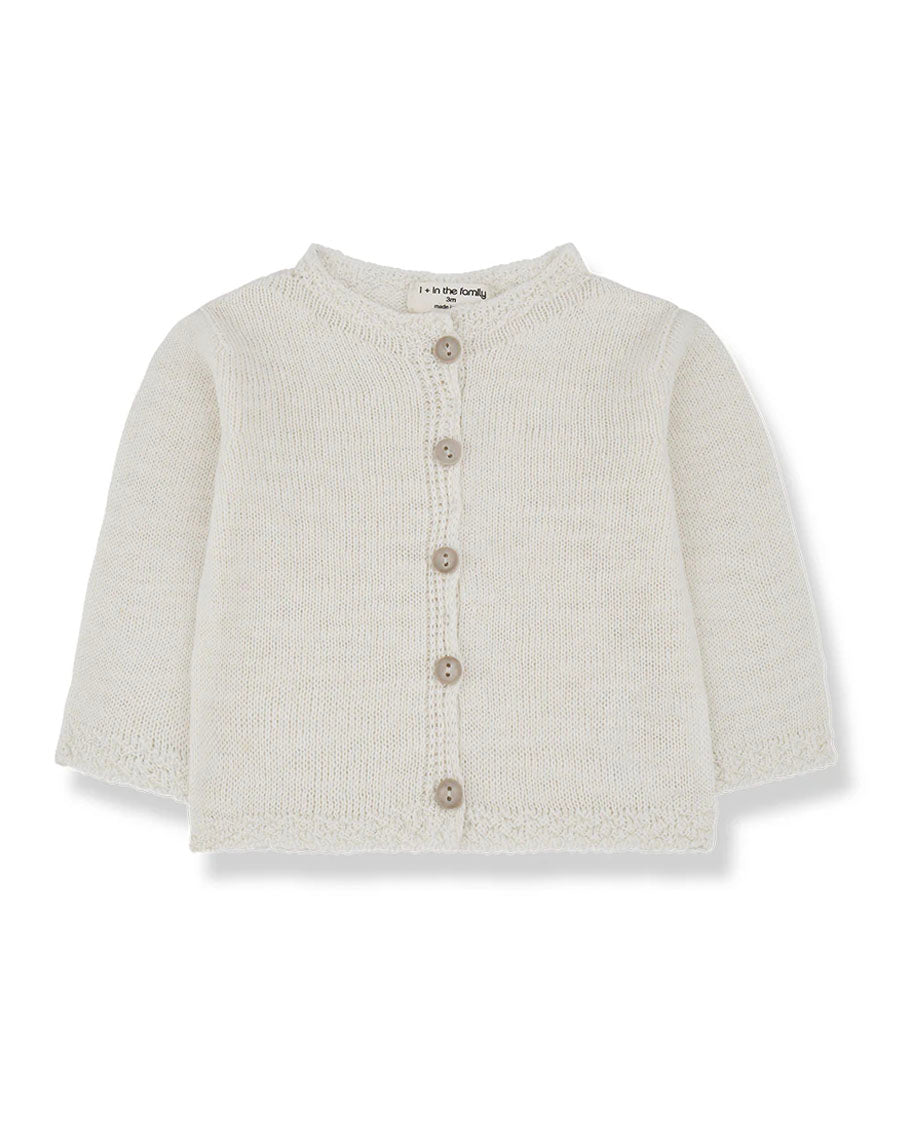 Heirloom knit sweater in neutral off-white shade. Versatile and sweet staple for warmer weather.