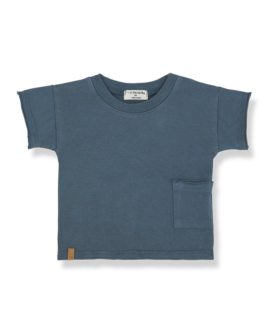 Soft jersey short sleeve t-shirt with ribbed collar. Patch pocket on right side. and personalized logo synthetic leather label.