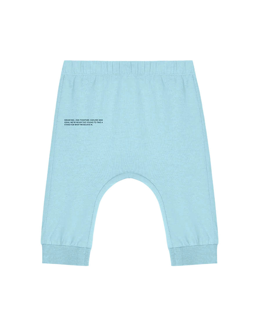 KEEP YOUR LITTLE ONE COMFY IN THE PANGAIA BABY 365 LIGHTWEIGHT TRACK PANTS IN CELESTIAL BLUE. MADE FROM 100% ORGANIC COTTON AND TREATED WITH PPRMINT™ FOR ADDED FRESHNESS, THESE TRACK PANTS ARE DESIGNED FOR DAILY ADVENTURES.