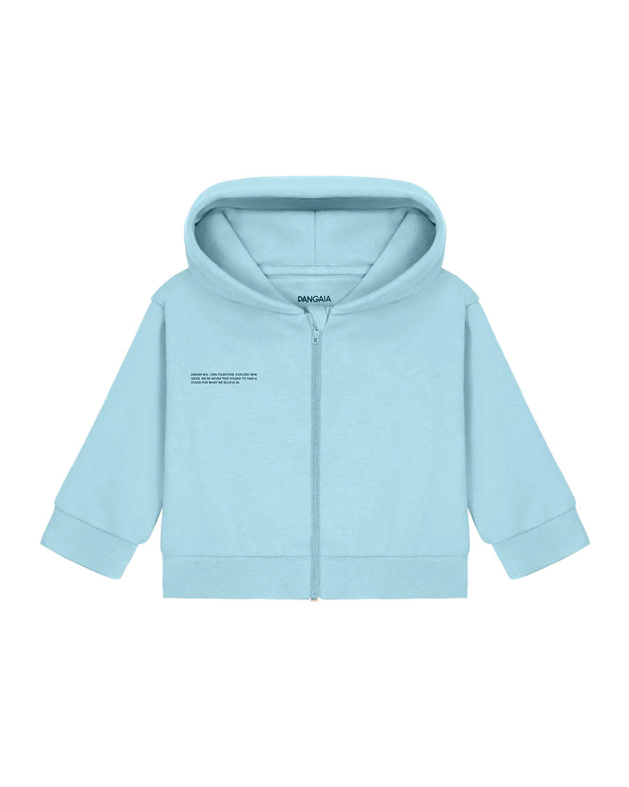 KEEP YOUR LITTLE ONE SNUG WITH THE PANGAIA BABY 365 MIDWEIGHT ZIP-UP HOODIE IN CELESTIAL BLUE. MADE FROM 100% ORGANIC COTTON AND TREATED WITH PPRMINT™ FOR LASTING FRESHNESS, THIS HOODIE IS PERFECT FOR EVERYDAY WEAR.