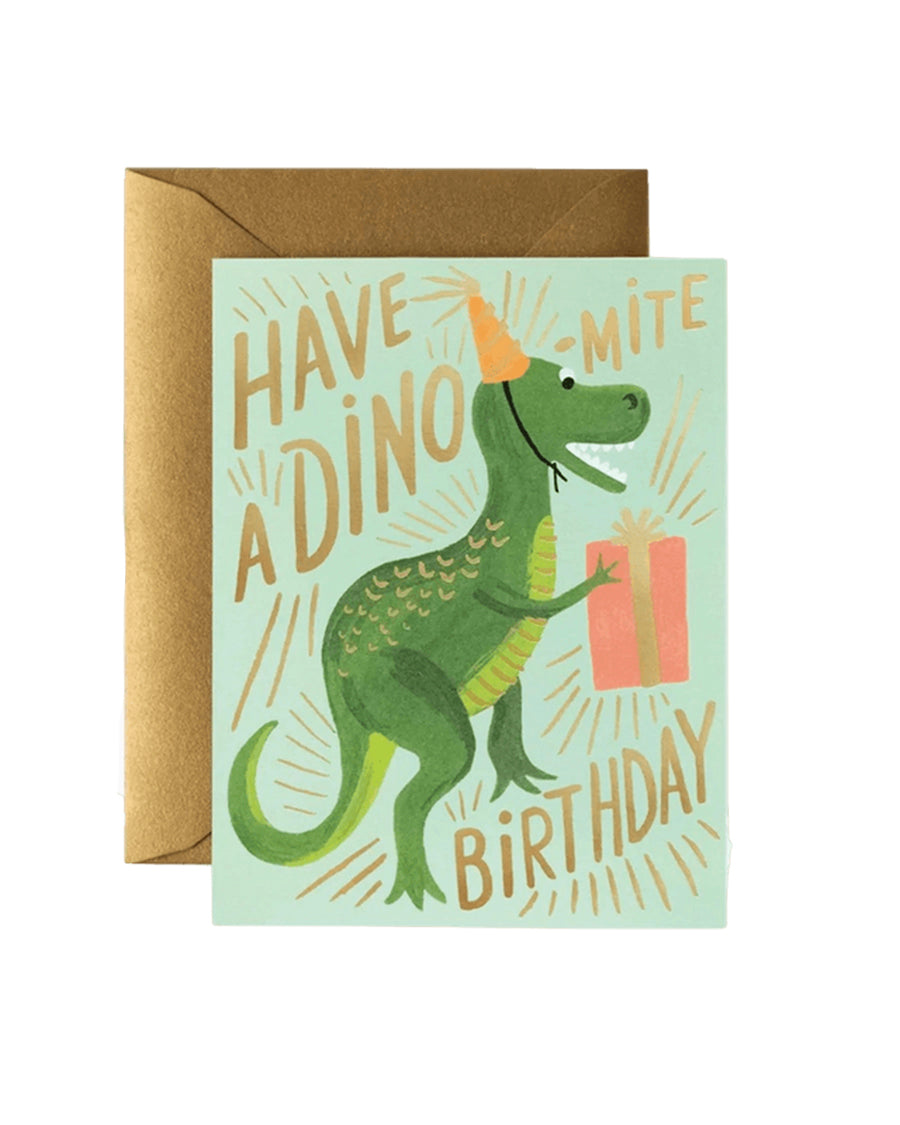 Send your favorite someone a thoughtful message with one of Rifle's T-Rex birthday greeting cards. A blank interior lets your handwritten note take center stage. Made by Rifle Paper Co.