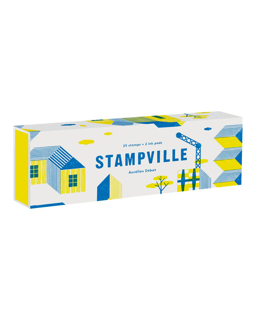 You are the architect, planner, designer, and builder with this set of rubber stamps and two colored ink pads. The matchbox-style box contains twenty-five woodbacked stamps in an assortment of shapes and textures, all the essential building blocks needed to create a simple house, a whimsical village, or a towering architectural marvel—the combinations are infinite and immediately gratifying.