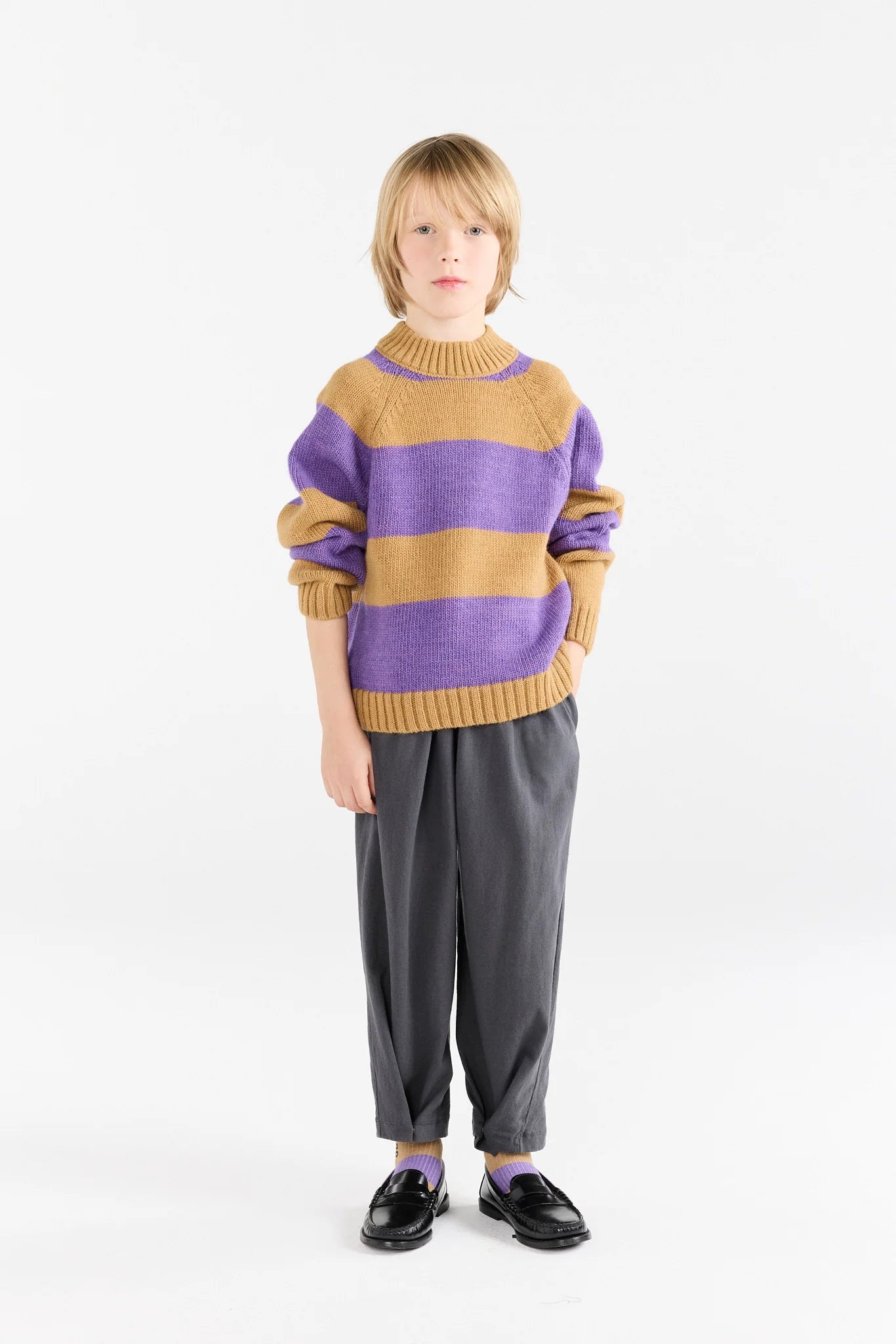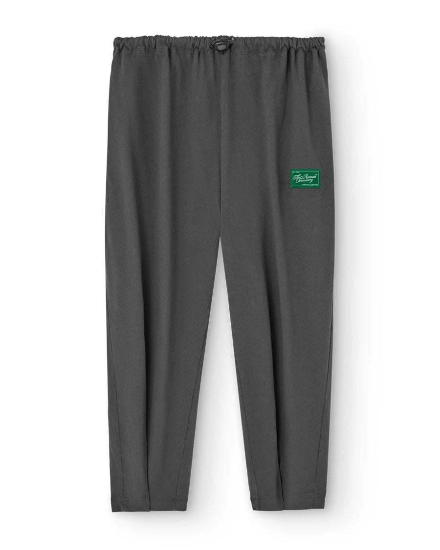 Cool and cozy charcoal joggers with a green patch, made for play and discovery—authentic kids clothes.