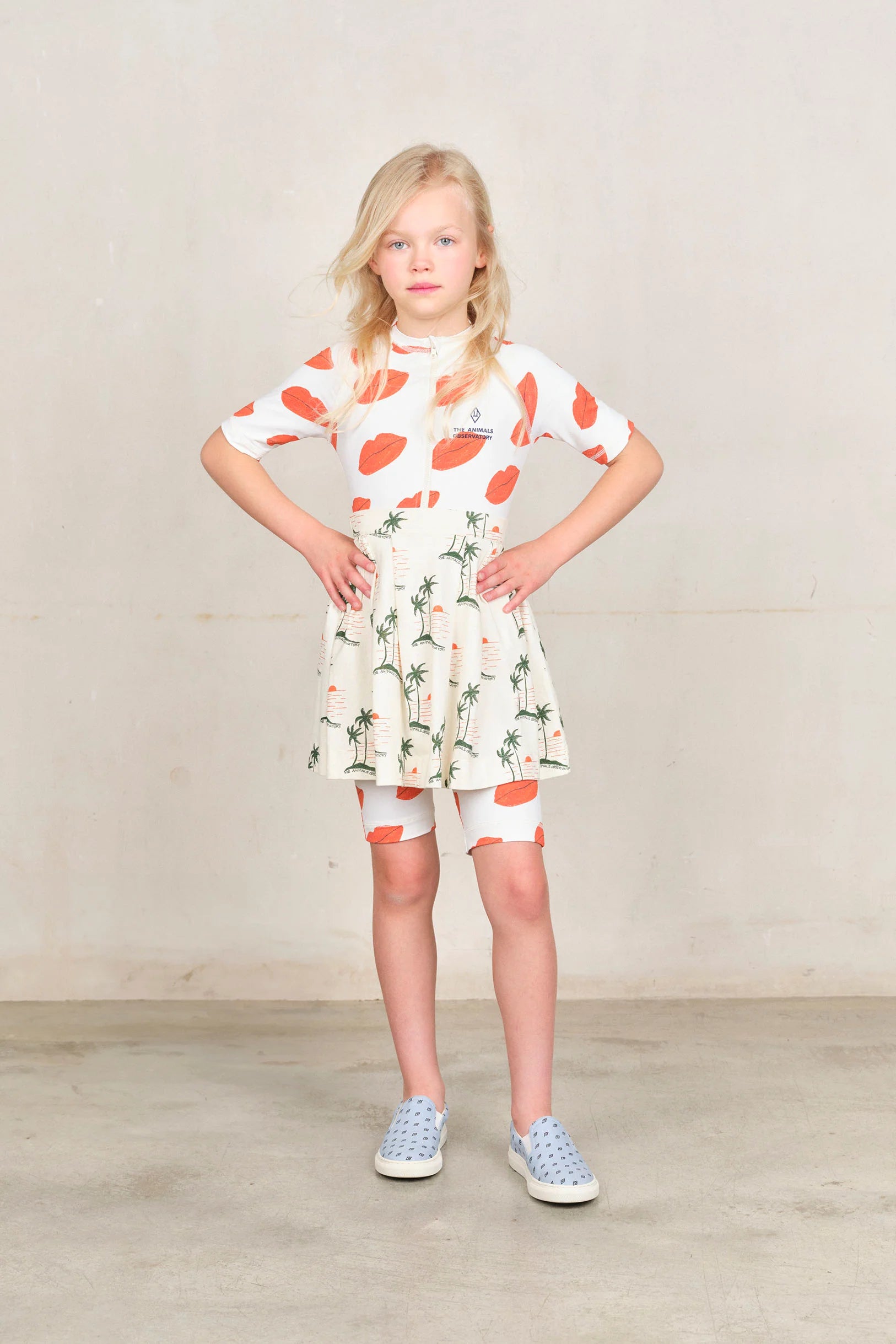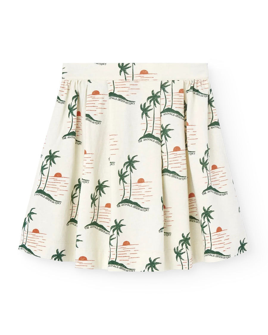 Pleated skirt featuring a sunset in paradise print. Light and breezy, perfect for summer outings.